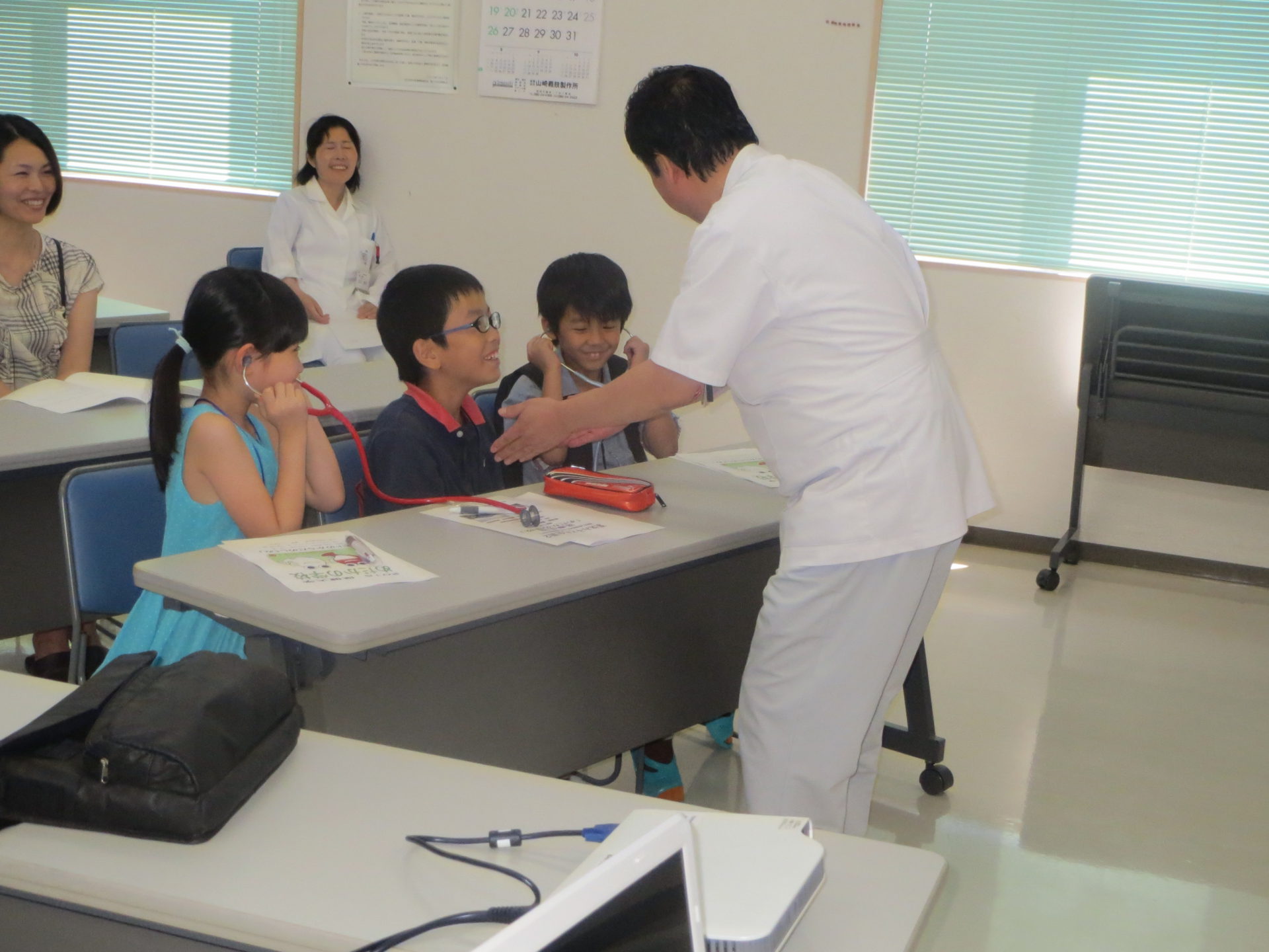 聴診器で心臓の音をききました