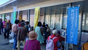 いきいき健康ウォーク in 綾出発前に血圧チェックをする参加者