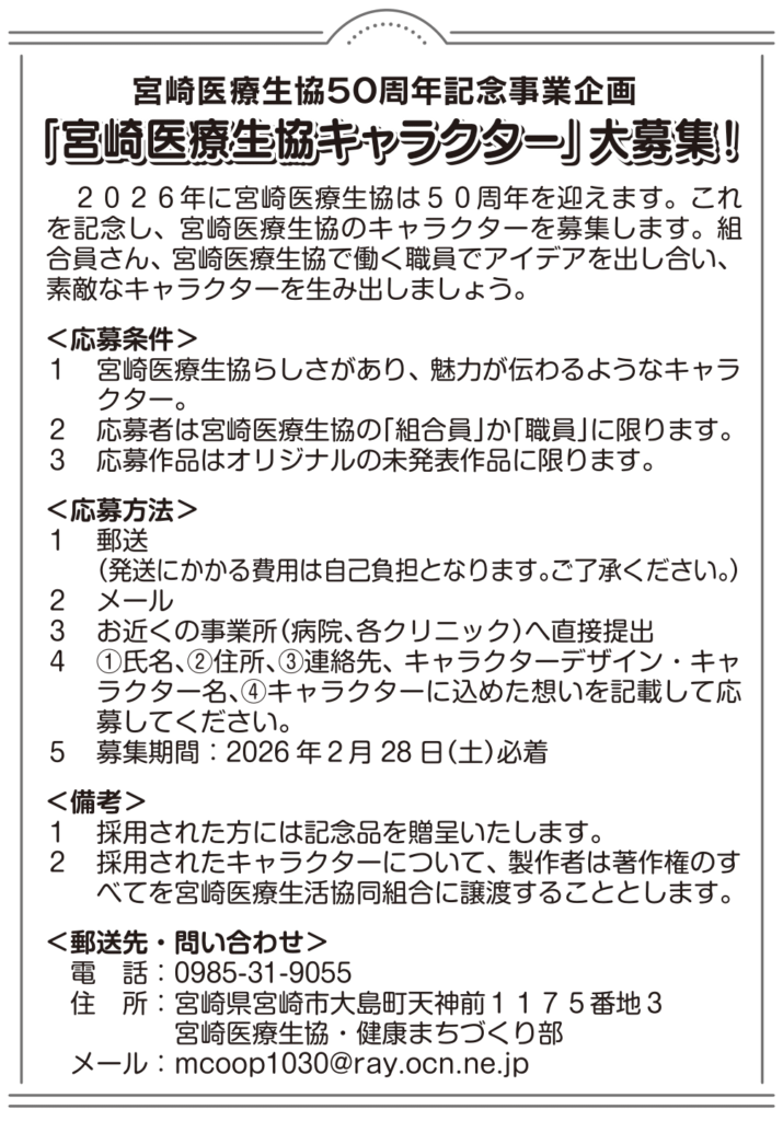 「宮崎医療生協キャラクター」大募集!